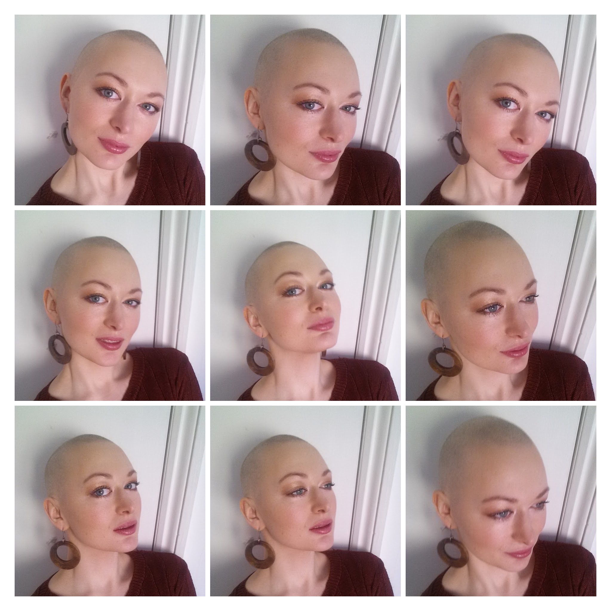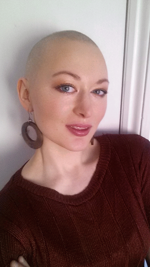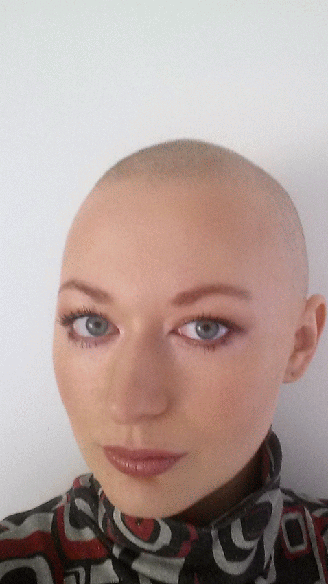 Il vantaggio di non avere capelli è che ora ho più tempo al mattino per pensare all’abito giornaliero e per giocare con il trucco. Quando avevo i capelli, mettevo solo fard quando andavo di fretta e qualche volta, mettevo la terra solitamente solo sui miei zigomi.