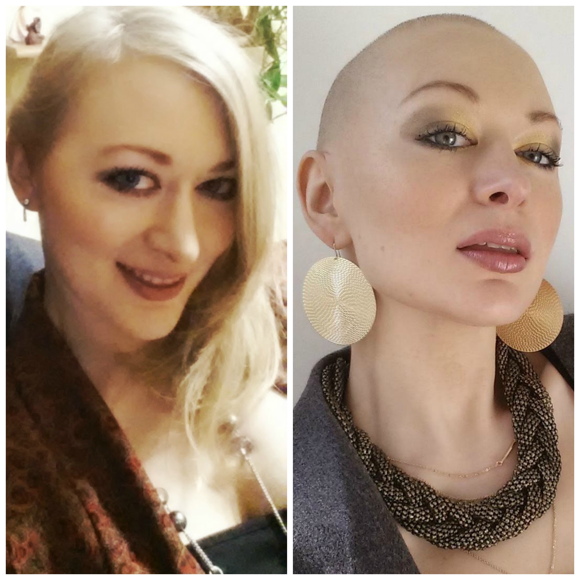 I miei capelli sono cominicati a cadere due settimane dopo il mio primo trattamento di chemio. Ho provato a vederlo come una metamorfosi; togliendo le ragnatele della vecchia me per fare spazio alla nuova me. Ho tagliato i miei capelli corti dopo la mia seconda seduta di chemio sperando che avrebbe rallentato la caduta dei capelli pero’ continuavano a cadere. Ho comprato una parrucca per nascondere la parte superiore della mia testa che era pelata e l’ho indossata per due giorni, sapendo che dovevo rasare tutti i miei capelli. Prima di rasare i capelli, ho cercato su internet un’ispirazione per confortarmi ma non ho trovato nessuna donna orgogliosa della priopria testa pelata. Quando mio fratello ha rasato la mia testa, mi sono guradata allo specchio e ho sorriso, non ho avuto piu’ paura. Mi sono sentita potente. Finalmente, mi sono sentita libera. Ho deciso in quel momento di non mettere mai piu’ la parucca ma liberare la mia bellissima testa!